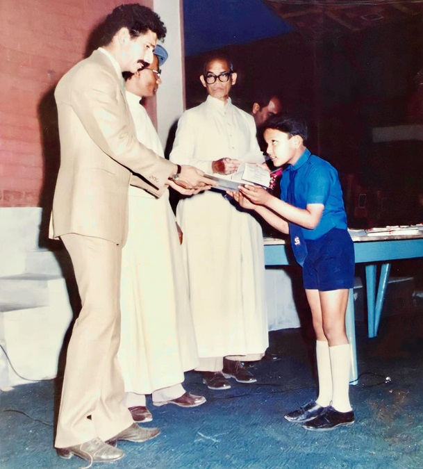 This pic is from annual function of 1988 and I am on dais to receive the General Proficiency award of the year from Mr. Shah who was the chief Guest that year.