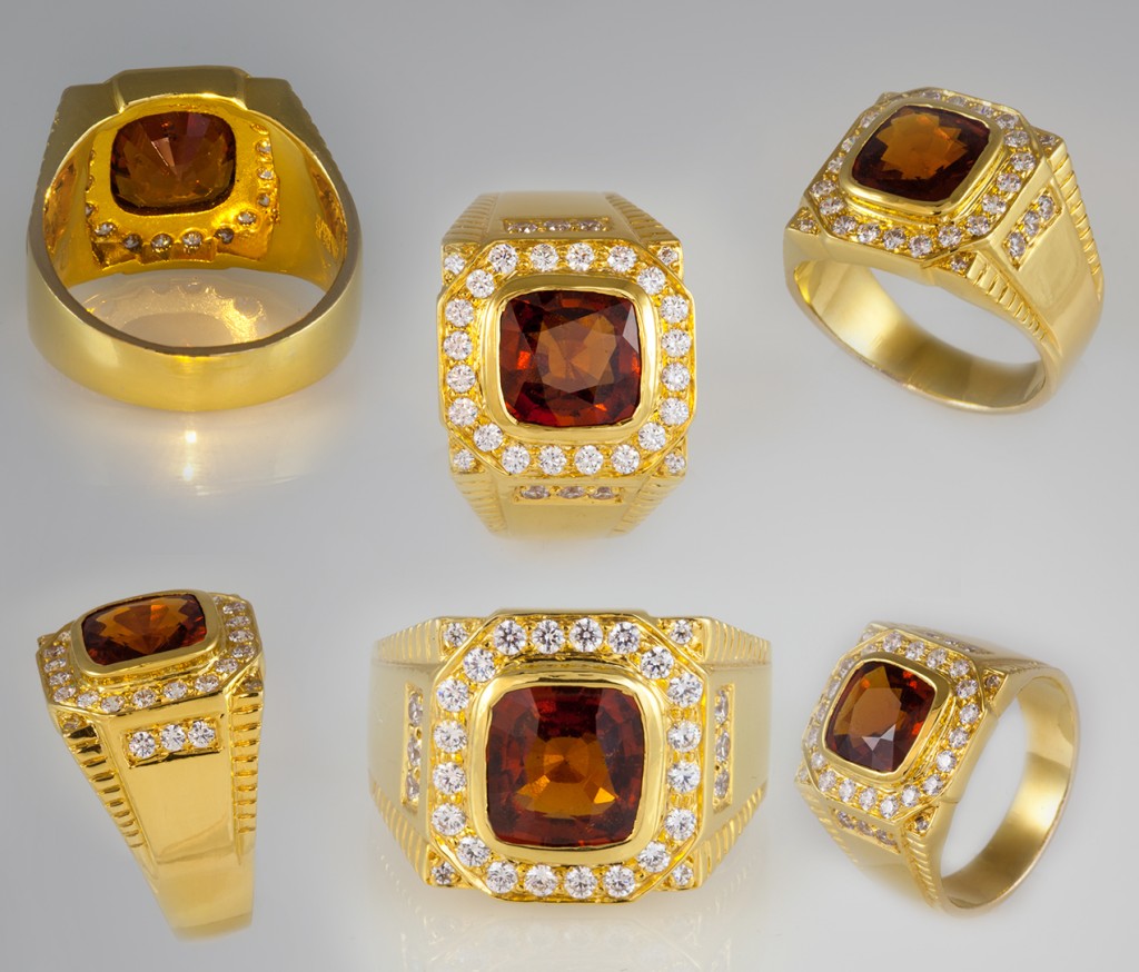 Photograph showing detailing of the fine Hessonite ring set in Gold