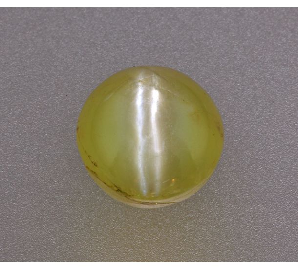 A powerful majestic Cat's Eye Chrysoberyl whose power is akin to a bolt of lightening from new lot of Cats eye-Camlo- you can feel the pulsating energy and power in this Vedic Gem. Beautiful Color, highly polished domed cabochon and a enchanting, mystical and strong Chatoyant Band. Think Cat's Eye Chrysoberyl and you instantly think of a vital life force, mysticism, profound energy, a life changing experience, noble spirituality and above all a capacity to take life head on. Featured here is such a noble Cat's Eye Chrysoberyl that is at the apex of Jyotish Quality Gemstones. All natural, treatment-free Cats' Eye Chrysoberyl with magnificent Chatoyancy, fine color and lustrous silk. Experience True Jyotish Gemstones.