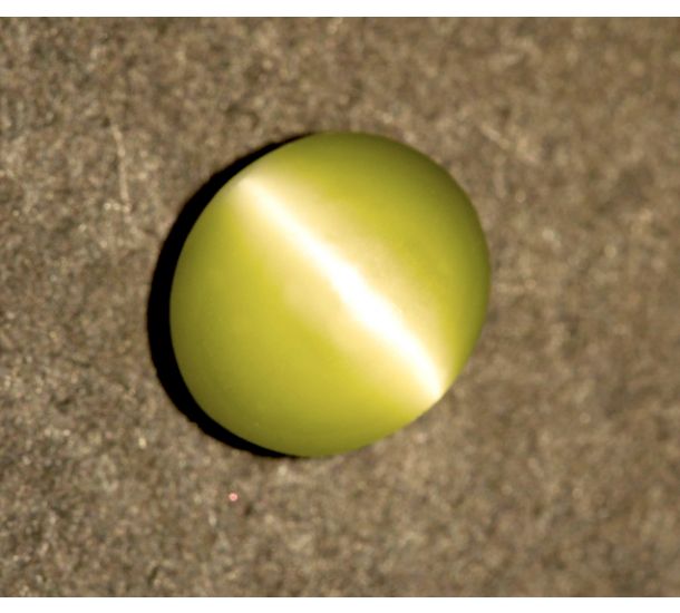 Note: The underside of the cat's eye gem is deliberately left rough to allow chatoyancy (Cat's eye effect to show on the domed surface of the cabochon, which is polished).