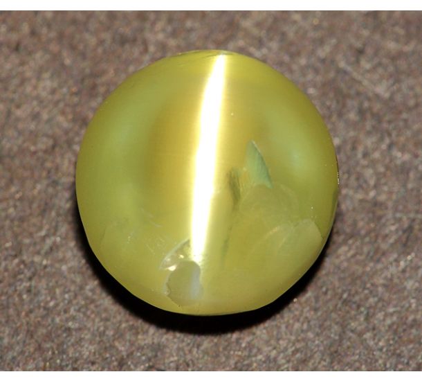 Note: The underside of the cat's eye gem is deliberately left rough to allow chatoyancy (Cat's eye effect to show on the domed surface of the cabochon, which is polished).