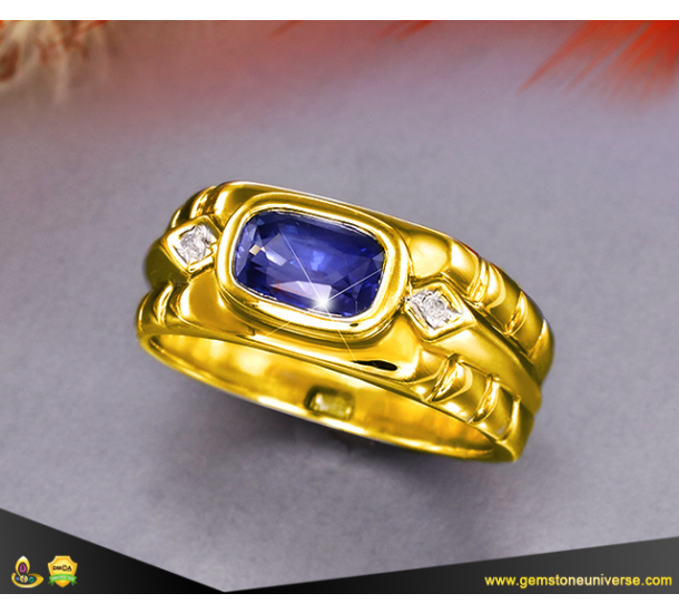Customized Gold Ring design - Can be made for all Navaratna. Classic design with Gemstone set horizontally in bezel setting. The design has small diamond stimulants on the either side of the gemstone. Our bench jeweller shall access the dimension of gem and confirm if the selected design can be made for the selected gemstone or not. For pointers for selecting the best designs please click here