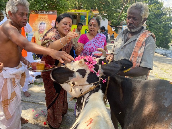 Our Mentor Abhijita Ji donating Cow and Calf to a needy brahmin family after the Gau Mahalahshmi Pooja