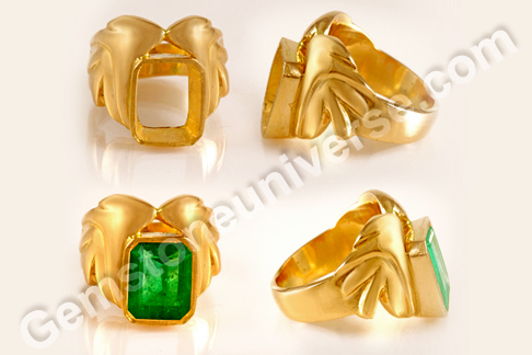 Featured today is a beautiful emerald stone ring with a natural Colombian emerald of 2.26 carats. The octagonal cut gemstone emerald has a magnificent deep emerald green color and fantastic clarity. It is a prized gem set in 22-karat gold Mercury talisman ring. The guardian angel wing design beautifully holds the gem in place. According to Hindu astrology, Natural emerald or panna gemstone has the power of Planet Mercury/ Budh and is used to harness its energies. Emerald gemstone is an indispensable astrological gemstone. Note: The above links generally exist on the website for a period of 40 days after which they are periodically deleted to make way for new gemstones and to enable faster browsing. Enjoy it in Video: |