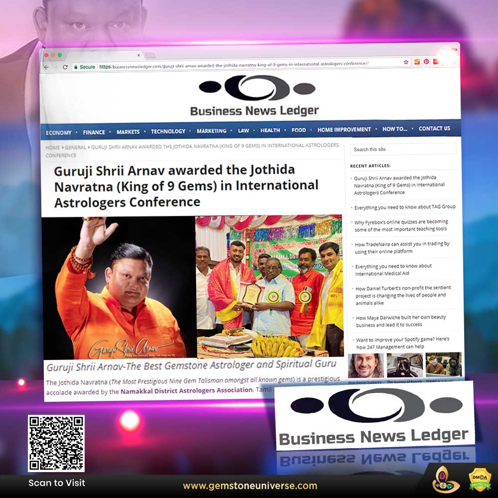 ARTICLES: Business News Ledger covers Guruji Shrii Arnav receiving The Jothida Navratna (King of 9 Gems) in International Astrologers Conference