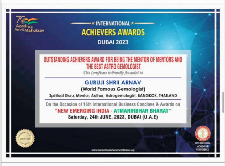 ARTICLES: Revered and Beloved Guruji Shrii Arnav received the International Achievers Award for being Mentor of Mentors and World's Best Astro Gemologist