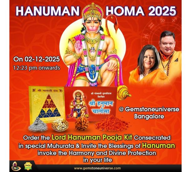 On the auspicious occasion of Hanuman Jayanti that is especially observed in Karnataka, a powerful Hanuman Homa/Pooja Yagya will be performed at Gemstoneuniverse, Bangalore with the guidance and blessings of our Mentor Revered Guruji Shrii Arnav and Abhijita Ji.
