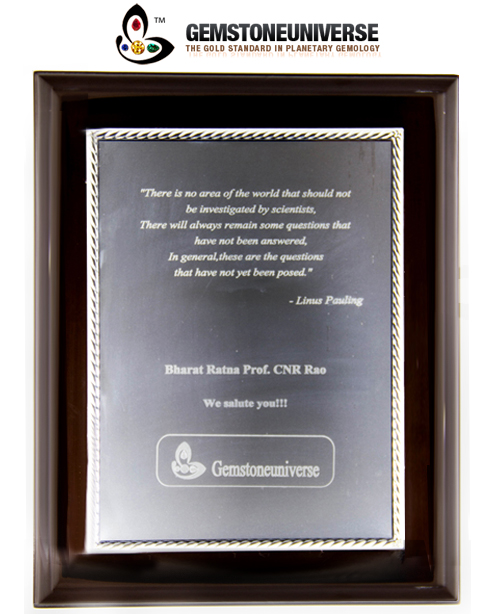 On August 5, 2014 Gemstoneuniverse awarded the” Maharatna” Award to Prof. Dr. CNR Rao in the 17th JRD Tata Memorial Lecture.