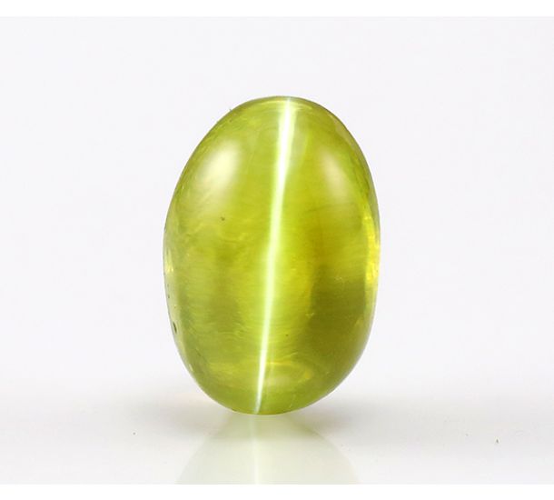 Hypnotic Golden Green Magnificent Cat’s eye from Ceylon with an electric strong and powerful chatoyant band that is distinct and noble.