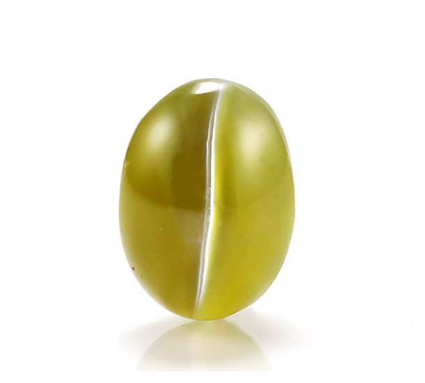Hypnotic Golden Green Magnificent Cat’s eye from Ceylon with an electric strong and powerful chatoyant band that is distinct and noble.