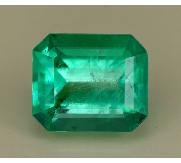 Fine example of what the natural Colombian emeralds are about! The pleasing appearance, the soothing color, sparkly lustre (hard to come by in majority of natural emeralds) and exceptional clarity. The emerald has a sprightly early summer grass green color that puts a spring in the step and sows the seed of hope and promise for the future.