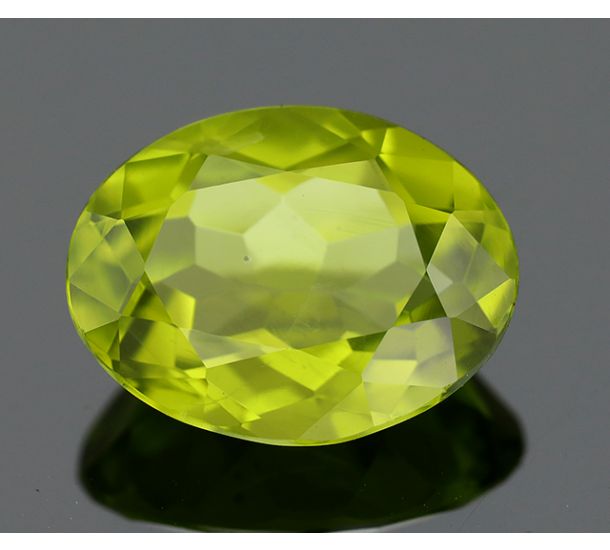 The perfection in colour is a pure symphony of hue, tone and saturation and the fine golden olivine green absolutely shines through.