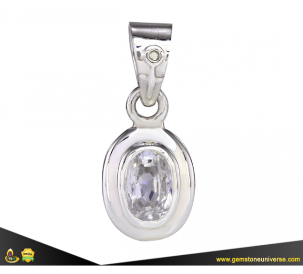 Planetary Bhasma 925 Silver Pendant Design for Planet Venus gemstones. Vedic symbol of Planet Venus being inscribed on the ring shanks - on either side of gem. Special Planetary Bhasma design with Gemstone set in bezel setting. Our bench jeweller shall access the dimension of gem and confirm if the selected design can be made for the selected gemstone or not. For pointers for selecting the best designs please click here