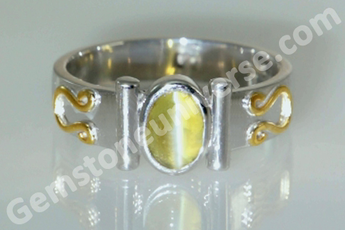 Yellow Sapphire Bhasma Ring with Ashwath Herb in the Tubes from Gemstoneuniverse