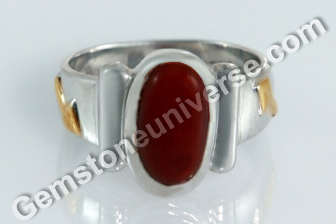 Sacred Herbal Ash Ring for Mars Red Coral Set with the Khadira Herb
