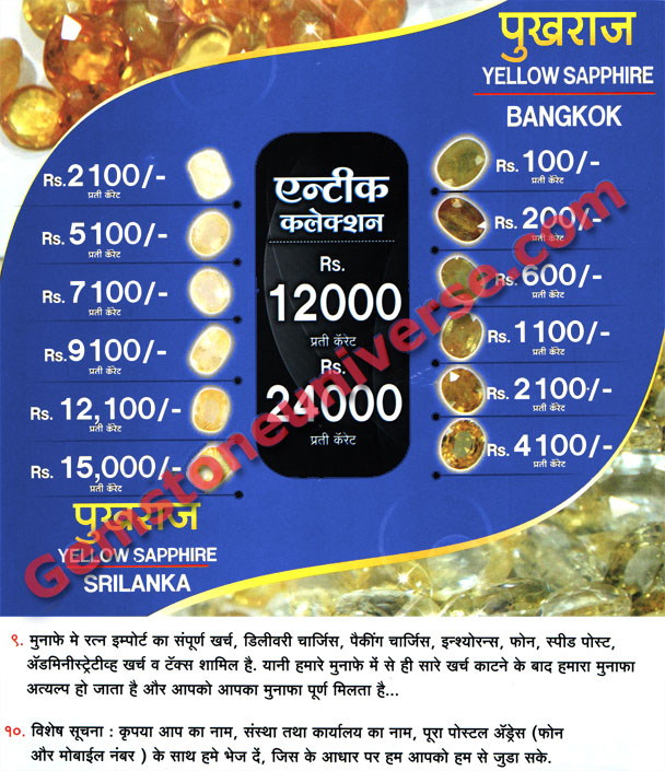 A Catalog Showcasing Price of Trash Thermally Treated Yellow Sapphire peddled as Jyotish Quality
