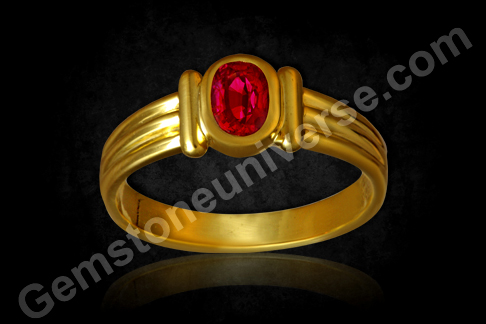Featured today is a natural and treatment free ruby from Mozambique. This African beauty is 1.21 carats in weight and has a deep vibrant reddish pink color. The clarity of this gem is amazing and is class apart. This oval cut ruby has been set in 22 Karat gold as a Sun talisman ring.Natural ruby or manik gemstone is the gem of Planet Sun, the king of the zodiac also known as Surya in Hindi and is used to harness its planetary energy.
