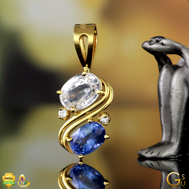 A Fine Jyotish Gemstone Blue Sapphire and White Sapphire Pendant from the Gemstoneuniverse collection of Fine Gemstones