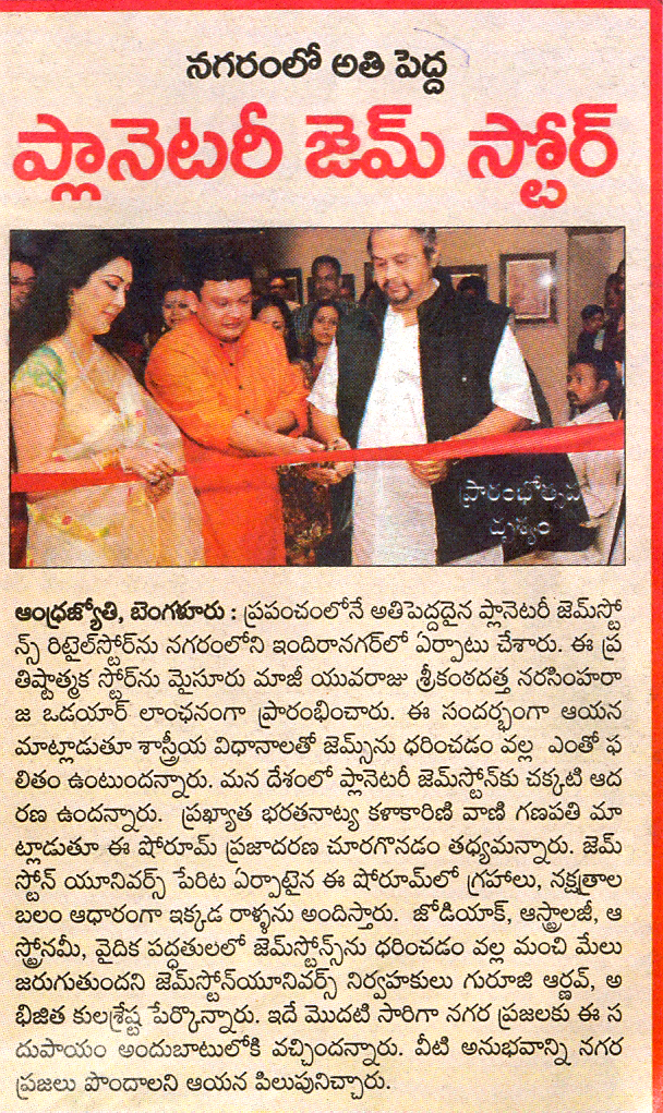 World's largest Retail Store for Planetary Gemstones, Inaugurated by HH Maharaja of Mysore